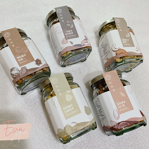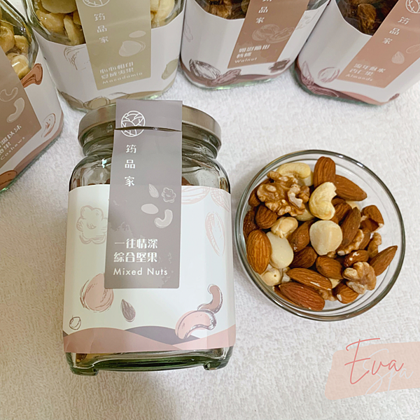 筠品家堅果採小罐玻璃瓶包裝,